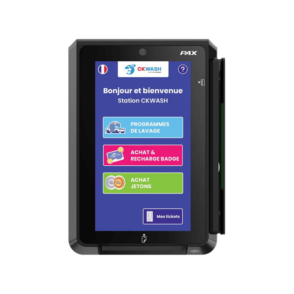 Terminal Bancaire PAX IM30 | CK Square Terminal bancaire tout-en-un compact et robuste pour environnements libre-service. Écran couleur tactile avec interface moderne. Caractéristiques